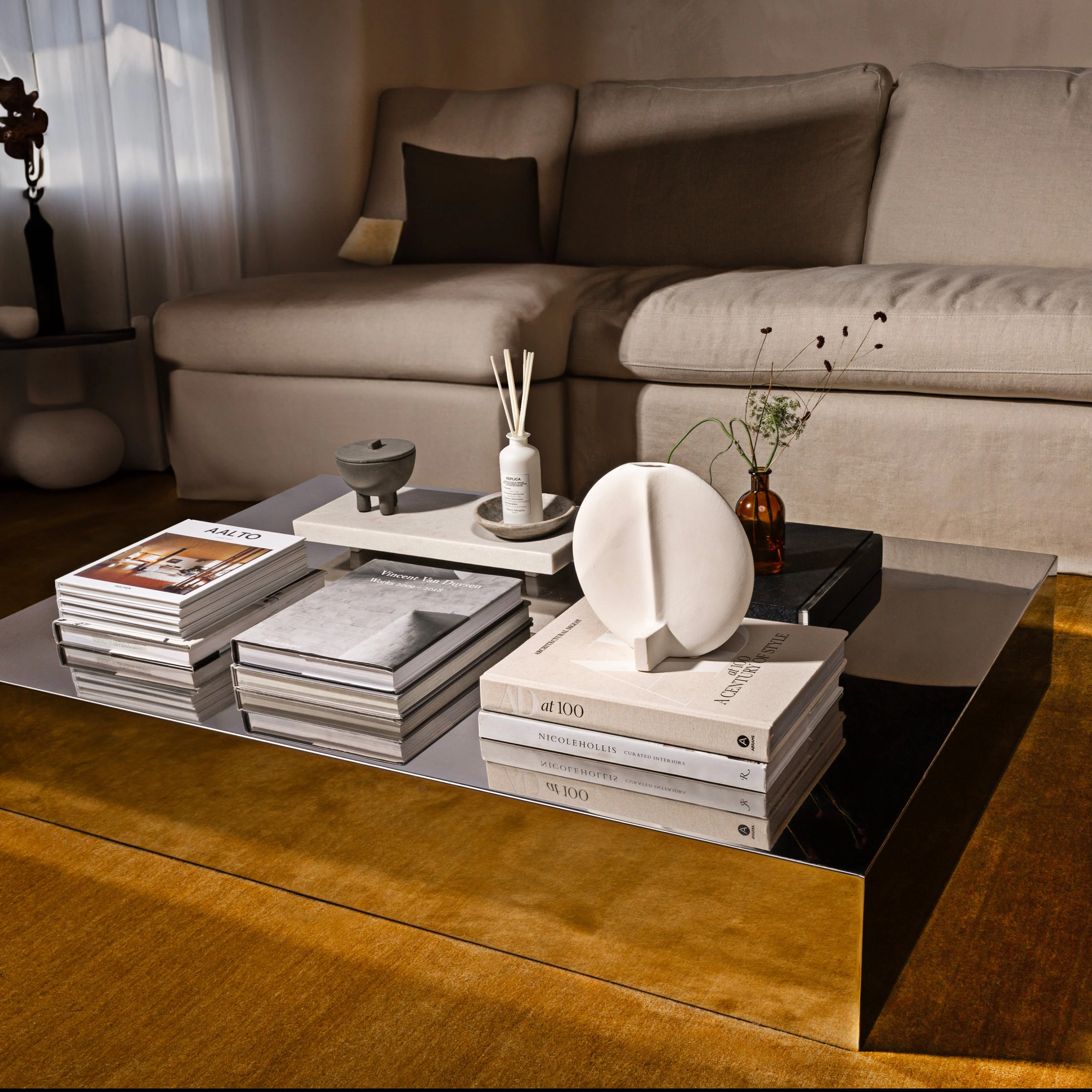 It is made with 304 stainless steel and is hand polished. It is rust-proof in any normal atmospheric conditions, and can be used for outdoor spaces.Â