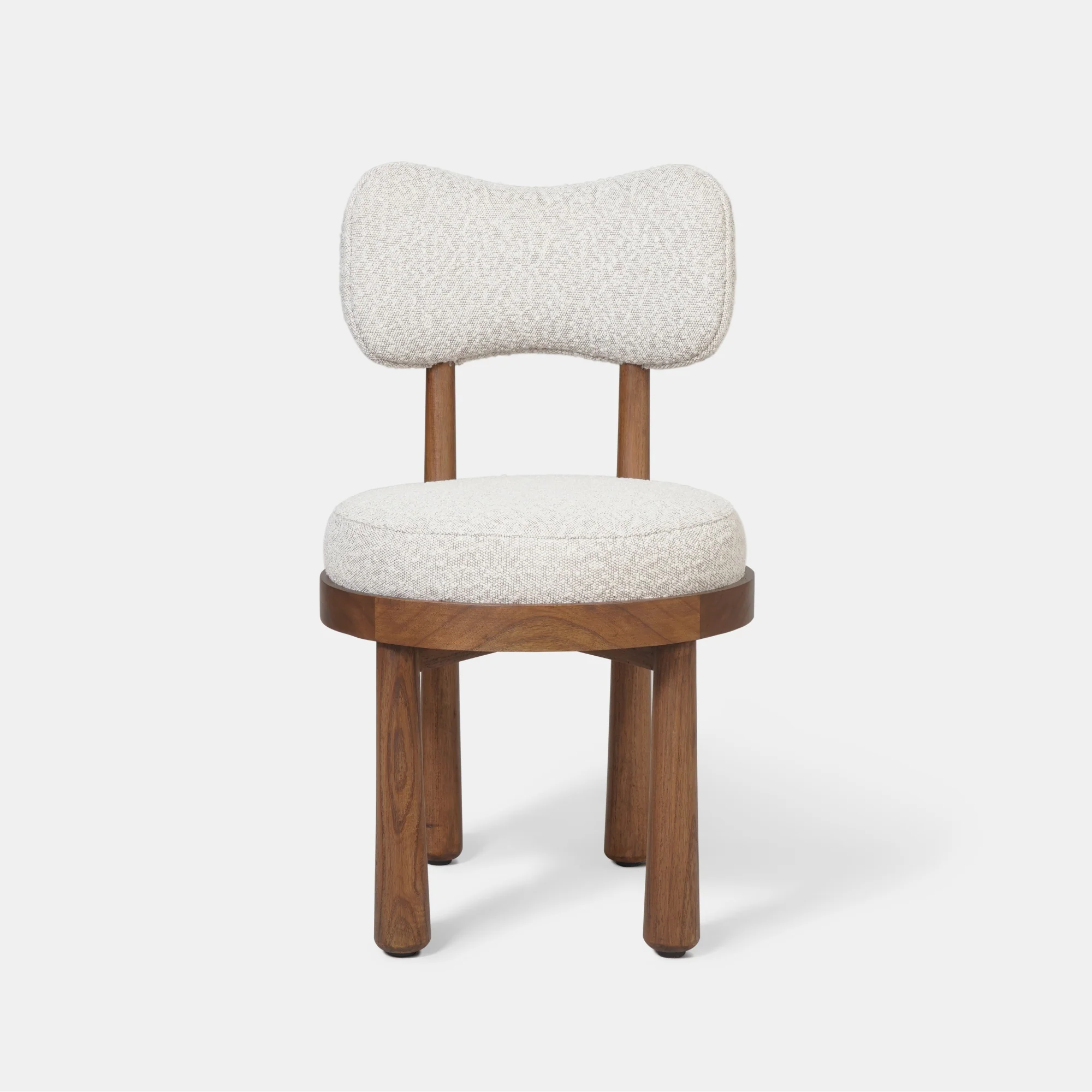 The Whisper Dining Chair draws inspiration from the soft, flowing forms of clouds and the fluid shapes found in nature. Its circular seat provides a timeless and comfortable base, while the sculpted backrest features gentle, irregular curves that mirror the organic movement of clouds drifting across the sky.