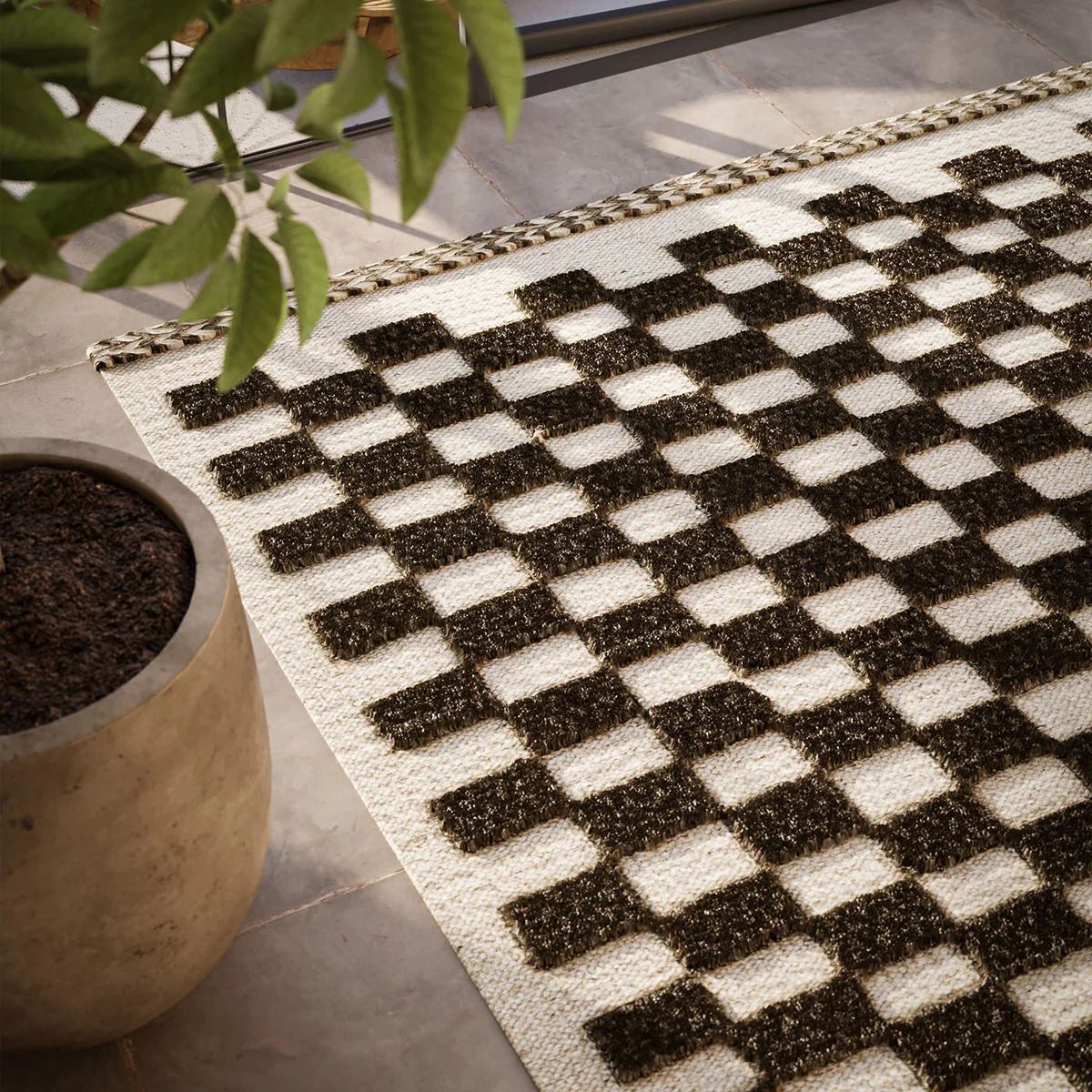 Flat-woven with pile, this design provides a unique interpretation of the pattern while adding in braided stripe edges. Since the warm autumn hue is inspired by nature, it feels timeless and versatile. Made of 100-percent wool and handwoven in India, the global influence can be felt in every aspect of the design.